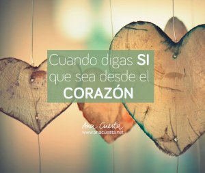 Y no hablo de mirar por ti y solo por ti. Hablo de que te sientas dueña y responsable de tus acciones. Y que cuando digas SI lo hagas desde el corazón y no desde tus miedos.